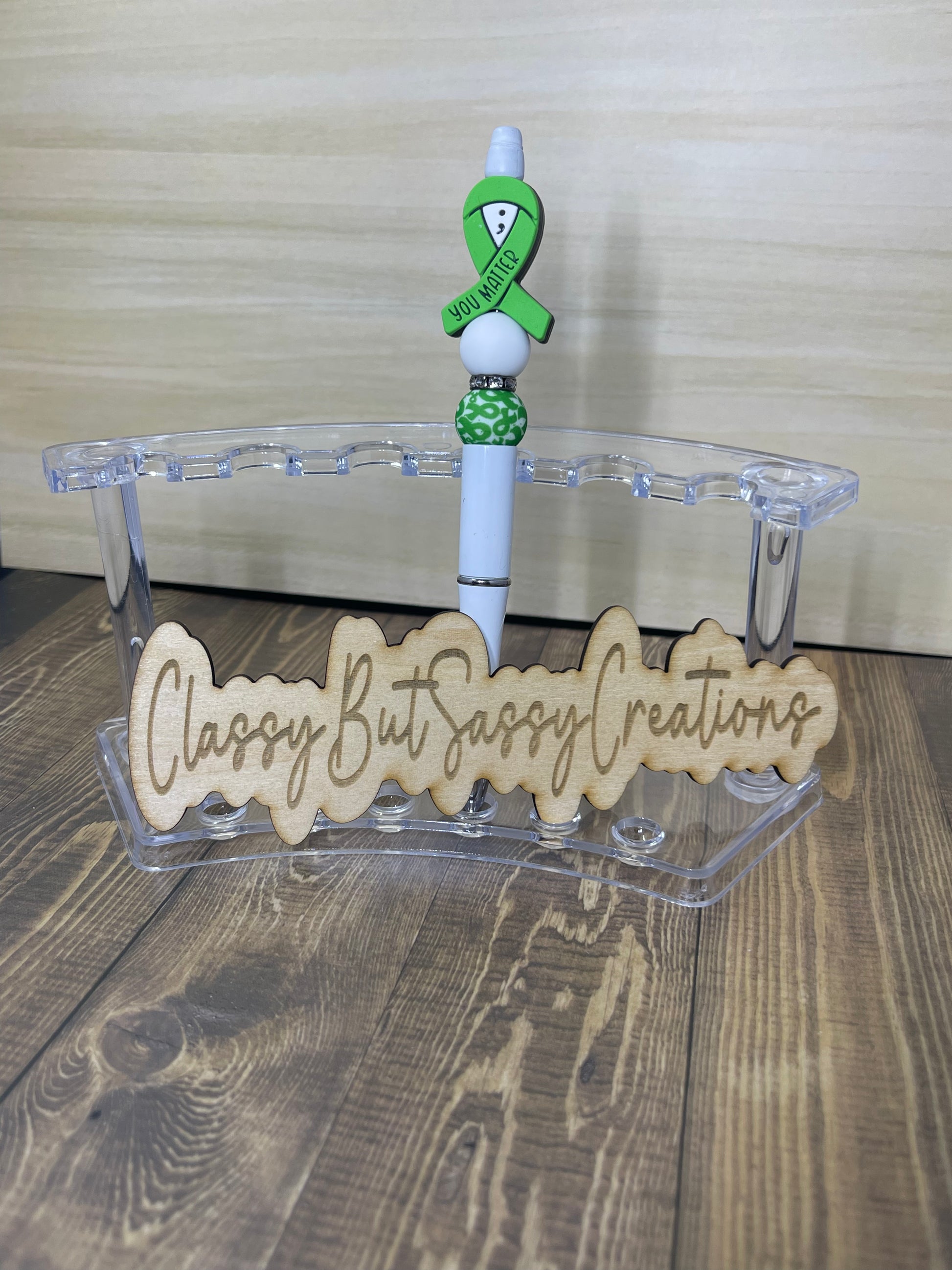 Plastic ball point pens with silicone beads, accessorized to be unique and hard to lose. Very comfortable to write with.